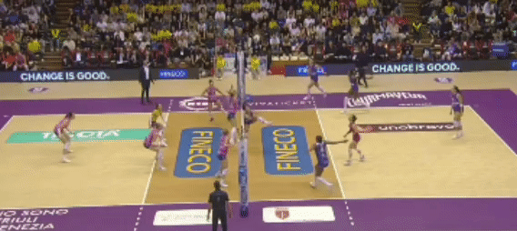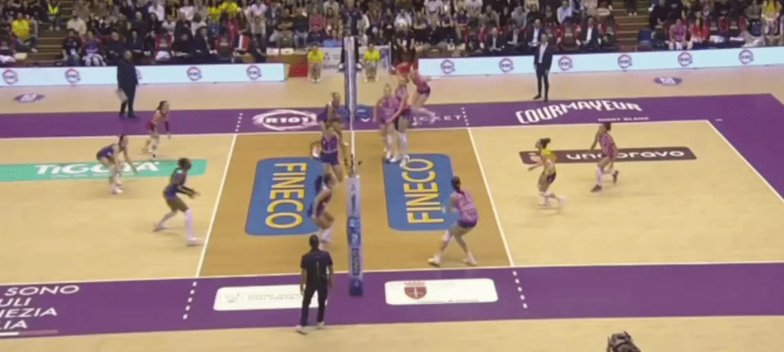开篇不看分,只看节奏。第一局科内利亚诺上来就把一传稳定性拉满,德吉纳罗在后场的“第一触”干净,沃沃什持球选择更大胆:四号位快节奏给加比、反手位高点喂哈克,朱婷在四号位两次“前交叉”卡了米兰的封闭手型,科内的侧翼拉开完成。米兰被动叫停,埃格努尝试吊、直线找手,仍被黑豹拦防拆招。25-18,科内拿下,表面轻松,核心在于一传到位让两边翼点都能连线。