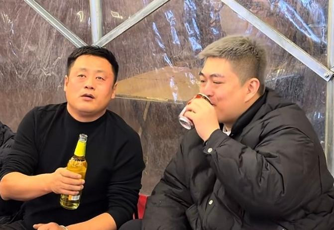 大家准备干杯的时候,就属他最积极,手里举着啤酒瓶,脸都喝得通红通红的,高兴劲儿全写在脸上了,一看就是真喝嗨了。